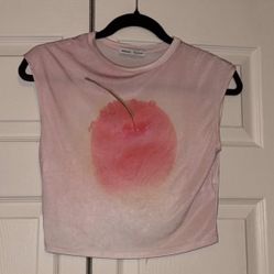 Bershka Pink Cherry Graphic Cropped T-Shirt - Size Medium (M)$5Sun City, AZ