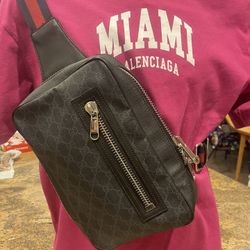 Snag this fresh Gucci GG Supreme sling bag in black—deadstock Italian craftsmanship, canvas with leather trim, belt or crossbody style. Holds phone, w$750Litchfield Park, AZ