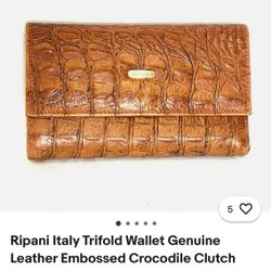 Ripani Italy Trifold Wallet / Clutch - Color Brown Deerskin. Crocodile Embossed. 100% Genuine Leather. Hand Crafted in ITALY. - PRICE IS OBO $60Phoenix, AZ