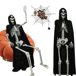 5.4ft/165cm Halloween Skeleton, Poseable Full Size Skeleton with Black Cloak, Life Size Human Bones for Halloween Front Yard Patio Lawn Garden Props $60Sun City, AZ