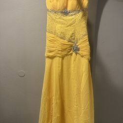 Yellow strapless prom dress with beading and rhinestones #prom #eveningwear #yellowdress Size S-M$30Phoenix, AZ