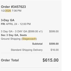 3 DAY GA STAGECOACH TICKETS$500Scottsdale, AZ