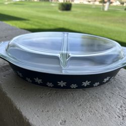 VTG Pyrex Black and white snowflake divided casserole dish with lid$50Mesa, AZ