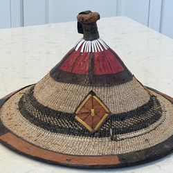 Vintage African Hat Vintage Handwoven Tribal Straw & Leather Conical Hat 15” Diameter$45Queen Creek, AZ
