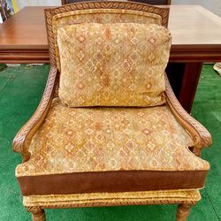 Paul Roberts traditional style arm chair on dark wood frame with patterned upholstered cushions. 33"wide x 38"deep x 40"high. $250Scottsdale, AZ