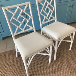 Two nice white rattan chairs with cushions$30Queen Creek, AZ