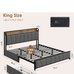 King Bed Frame With Headboard, Outlets, And Usb Port$45Mesa, AZ