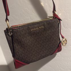 Michael Kors Brown Red Logo Shoulder Bag Double Handles Bag Charm Buckle Accent$35Chandler, AZ