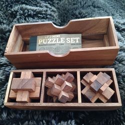 $14 Vintage 3D Puzzles Brain Teasers Wooden Puzzles Game Set In Wooden Box. With Directions $14Gilbert, AZ
