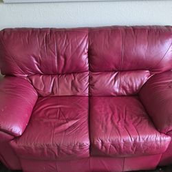 Red Leather Couch Set With Matching Ottoman$150Mesa, AZ