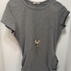 Gray Women's Short-Sleeve Tunic with Gold Pendant Necklace$15Mesa, AZ