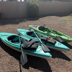 2 Pelican Trailblazer 100 Kayaks And 1 Sun Dolphin Bali 10 ss Kayak $300Chandler, AZ