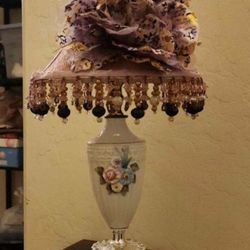 VINTAGE ORNATE HAND PAINTED PORCELAIN CAPODIMONTE FLORAL FLOWER ROSE BOUQUET LAMP BASE W/ BEADED FRINGE$45San Tan Valley, AZ