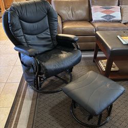 Vintage Genuine Leather Swivel Recliner Chair with Ottoman Brown MCM Style$150Queen Creek, AZ