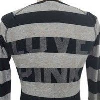 LIKE NEW VINTAGE VICTORIA'S SECRET PINK LOGO GRAY BLACK STRIPE LOVE LONG SLEEVED HENLEY SHIRT BLOUSE TOP SIZE SMALL SM$40San Tan Valley, AZ