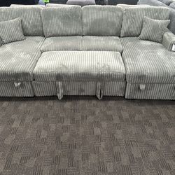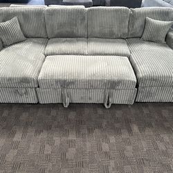 🩶NEW!! GREY Corduroy Living Room Sleeper Sofa Bed Sectional Storage Chaise $10 DOWN$10Guadalupe, AZ