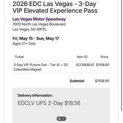 EDC VIP 3 DAY single Ticket $1,000Glendale, AZ