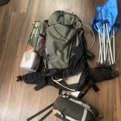 Hiking Backpack With A One Person Tent A Sleeping Bag And A Small Camp Chair $54Phoenix, AZ