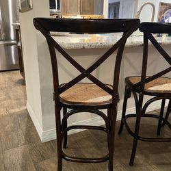 Kitchen Bar Stools Counter Height (5) Walnut Colored Wood Bentwood Stools with Cross Back and a Woven Cane Rattan Seat | $50 EACH (Retail $240 Each) $50Phoenix, AZ