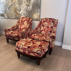 TWO High End Luxury UNIVERSAL FURNITURE Feather Blend Oversized Accent Chairs w/ Ottoman$450Gilbert, AZ