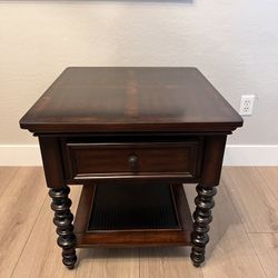 26” Tall Two Tier Solid Wood Grain End Table w/ Dovetail Drawer -Cane Shelf and Turned Legs$175Gilbert, AZ