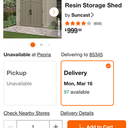 8 ft. x 5 ft. Resin Storage Shed$780Glendale, AZ