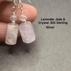 Lavender Genuine Jade & Crystal .925 Sterling Silver Earrings RARE$30Queen Creek, AZ