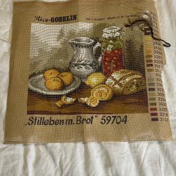 Gobelin Needlework Tapestry Painted Canvas - Table Fruit Milk Bread Setting$39Hereford, AZ