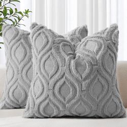 decorUhome Cozy Textured Throw Pillow Covers 18x18 Inch Set of 2, Soft Plush Faux Wool Grey Accent Couch Pillow Covers for Modern Farmhouse Sofa Bed L$8Tucson, AZ