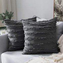 MIULEE Set of 2 Decorative Boho Throw Pillow Covers Linen Striped Jacquard Pattern Cushion Covers for Sofa Couch Living Room Bedroom 20x20 Inch Dark G$8Tucson, AZ