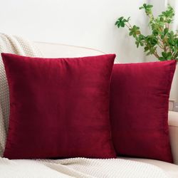 HWY 50 Burgundy Red Velvet Throw Pillow Covers 18x18 Inch, Pack of 2 Soft Cozy Solid Decorative Luxury Cushion Cases for Couch Sofa Bed Living Room Be$8Tucson, AZ