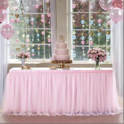 Suppromo 14ft Pink Table Skirt Tulle Tutu Tablecloth For Rectangle Or Round Table For Birthday Party Baby Shower Wedding Decorations (L14(Ft) H 30in,$20Avondale, AZ