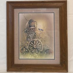 Vintage Andres Orpinas framed wall art picture blue birds nesting in mailbox $8Phoenix, AZ
