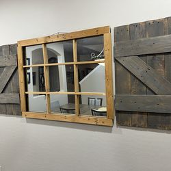 Beautiful Custom Made Farmhouse Style Wall Decor Set, Features Windowpane Mirror Flanked, Rustic Barn Wood Shutters.$150Goodyear, AZ