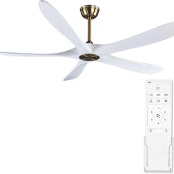 Bigzone 60 Inch White and Gold Ceiling Fan No Light with Remote, 5 Solid Wood Blades, Reversible Noiseless DC Motor, Energy-Efficient Indoor/Outdoor C$250Avondale, AZ