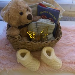 Baby Gift Basket – Handmade Booties, Burp Towels & Plush Bear (Neutral Colors)$25Mesa, AZ