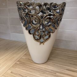 White Ceramic Vase With Silver Swirl Detail $20Phoenix, AZ