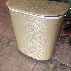 Vtg Gold Vinyl Clothes Laundry Hamper Basket Padded Lid Metal MCM Retro$100Buckeye, AZ