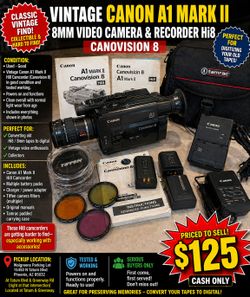 🎥 Canon A1 Mark II Hi8 Camcorder – Tested & Working – Full Kit $175$125Phoenix, AZ