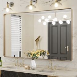LOAAO 60”X36” Gold Bathroom Mirror, Rounded Rectangle Gold Frame Mirror$280Phoenix, AZ