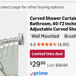 Curved Shower Curtain Rod for Bathroom, 40-72 Inches$15Glendale, AZ