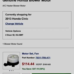 Civic si blower motor$70Tempe, AZ