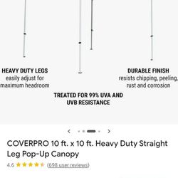 COVERPRO 10 ft. x 10 ft. Heavy Duty Straight Leg Pop-Up Canopy$65Phoenix, AZ