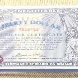2007 Norfed $1 Silver Certificate Liberty Dollar$25Phoenix, AZ