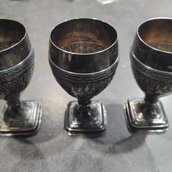 Vintage Derby S.P. Co Silver Goblets Set Of 3 ...1922 Ornate W.M. Mounts USA Etched Cups$49Phoenix, AZ