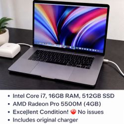 MacBook Pro 16” 2019 Intel Core i7 16GB RAM 512GB SSD AMD Radeon 5500M – Excellent Condition$600Phoenix, AZ