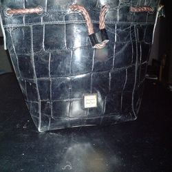 Dooney & Bourke Black Croc Embossed Leather Bucket Bag