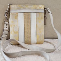 Coach Signature Stripe Yellow C Canvas Logo White Leather Crossbody Purse Bag - Please Read Description $75Goodyear, AZ