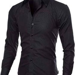 Men's Dark Print Casual Long-Sleeved Shirt Business Slim Button Down Shirt Fashion Plaid Lapel Iron-Free Shirt. Size: XL. Color: Black$5Peoria, AZ