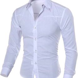 Men's Dark Print Casual Long-Sleeved Shirt Business Slim Button Down Shirt Fashion Plaid Lapel Iron-Free Shirt. Color: white. Size: XL$5Peoria, AZ